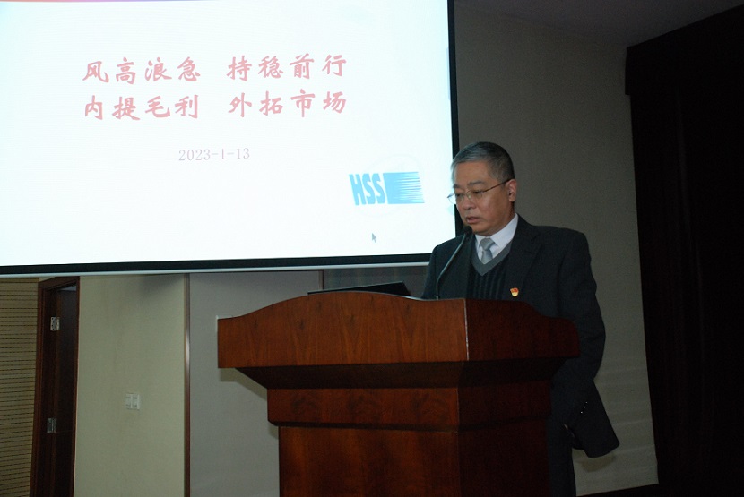 會(huì)議在嘹亮的國歌聲中拉開序幕,首先由2022年度2個(gè)優(yōu)秀單位代表--煉鋼分廠和國際業(yè)務(wù)部進(jìn)行經(jīng)驗(yàn)交流分享,2022年度面對能源和原材料價(jià)格上漲的困境,面對新冠疫情、俄烏戰(zhàn)爭等不諸多利因素給國際貿(mào)易帶來了極大的挑戰(zhàn),這兩個(gè)部門不等不靠,創(chuàng)造性開展工作,在挖潛降耗,降本增效取得巨大突破,出口銷量和銷售收入雙創(chuàng)新高,他們工作的亮點(diǎn)和先進(jìn)經(jīng)驗(yàn)非常值得大家借鑒和效仿。