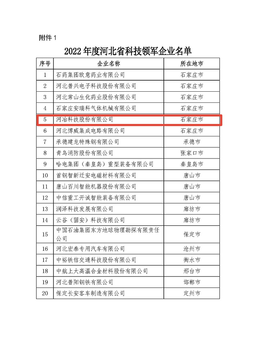 近日,河北省科技廳發(fā)布《關(guān)于公布2022年度認(rèn)定河北省科技領(lǐng)軍企業(yè)和列入科技領(lǐng)軍企業(yè)培育庫(kù)企業(yè)的通知》,我公司經(jīng)推薦、評(píng)審、公示,成功被認(rèn)定為“河北省科技領(lǐng)軍企業(yè)”。