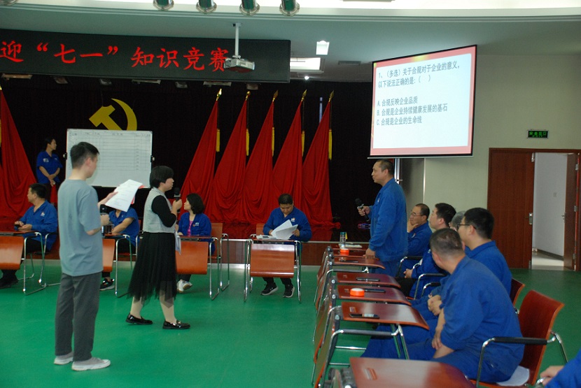 為迎接黨的102周歲華誕,深入學(xué)習(xí)貫徹習(xí)近平總書記重要講話精神,不斷創(chuàng)新學(xué)習(xí)形式、深化學(xué)習(xí)效果,2023年6月30日,公司黨群紀(jì)檢工作部組織了“2023年迎七一黨史知識競賽”活動。公司黨委副書記梁敬斌、總法律顧問劉鵬杰、工會主席趙金伶出席比賽現(xiàn)場。公司九支隊伍參加比賽,每支隊伍由三名隊員組成,分別為各支部支委、正式黨員和入黨積極分子。